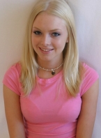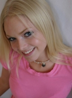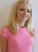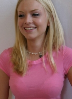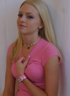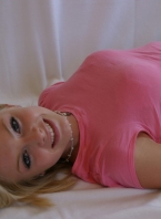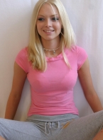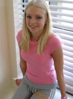Super cute Skye poses for pictures in a tight pink shirt and grey sweat capri's